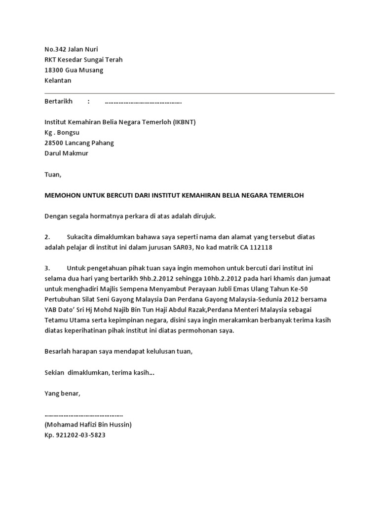 Surat Cuti Tanpa Gaji Atas Sebab Peribadi Letter 7saudara Com